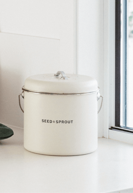 1 x Compost Bin with re-usable charcoal filter in our Mushroom White powder coated matte finish